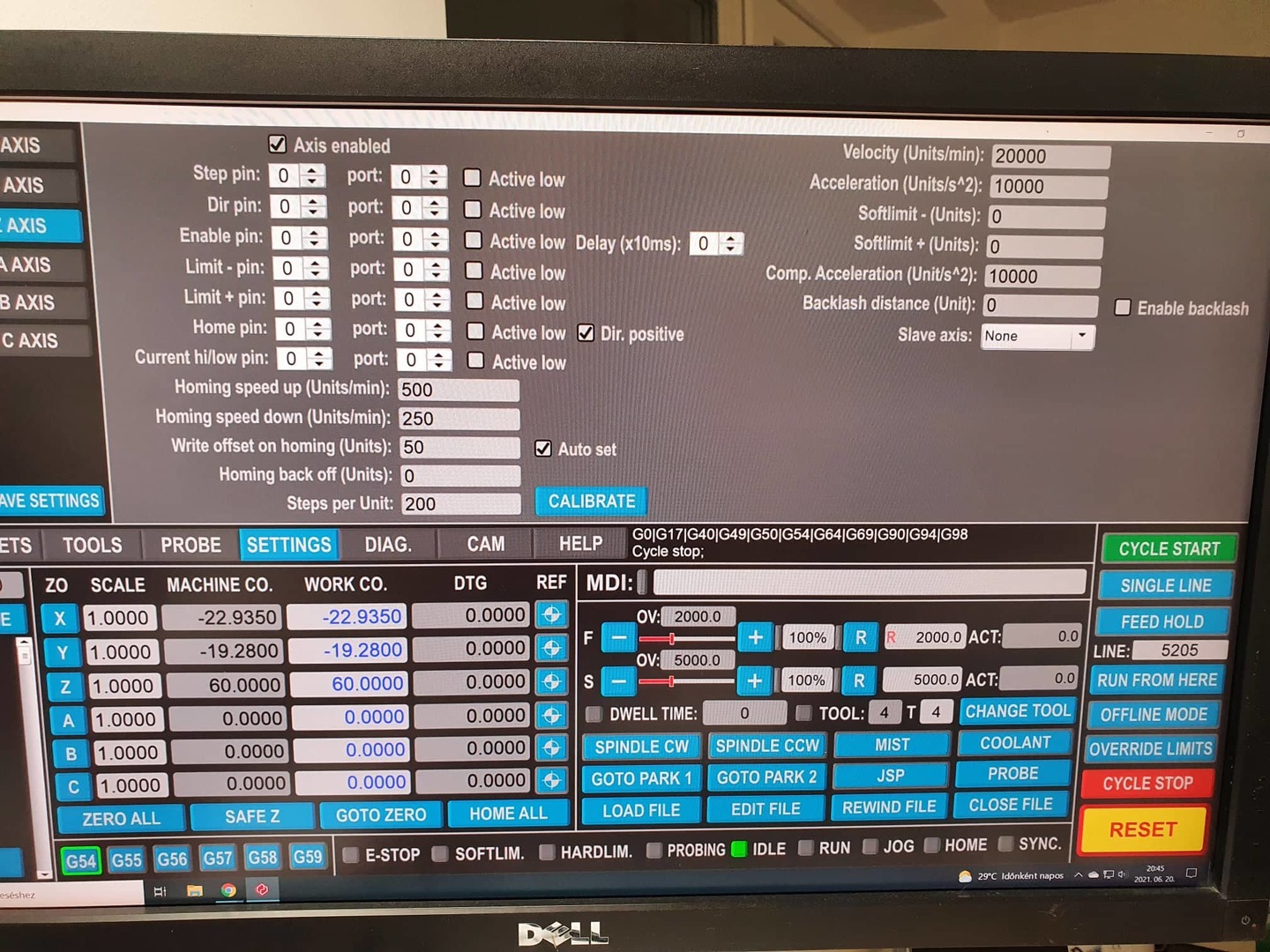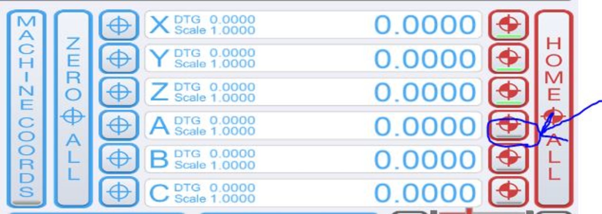 Ha rámegyek, hogy "Home ALL" rendben lezajlik a folyamat, X Y Z tengelynél zöldre is vált a kis ikon. Viszont az A tengelynél(Y szolga tengelye) nem lesz zöld a kis ikon(csak ha rákattintok kézzel miután beállt a home pozicióba)