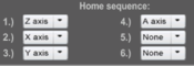 A general settings oldalon ott van a home sequence, ami a tengelyek home-olási sorrendjét határozza meg. (Lásd kézikönyv, 3.6 Általános beállítások. [#nezze] [#vigyor2])