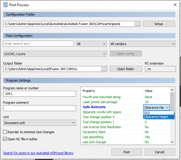 és változtattál valamit a post processor beállításoknál? Vagy mindent hagytál az alap beállításon?