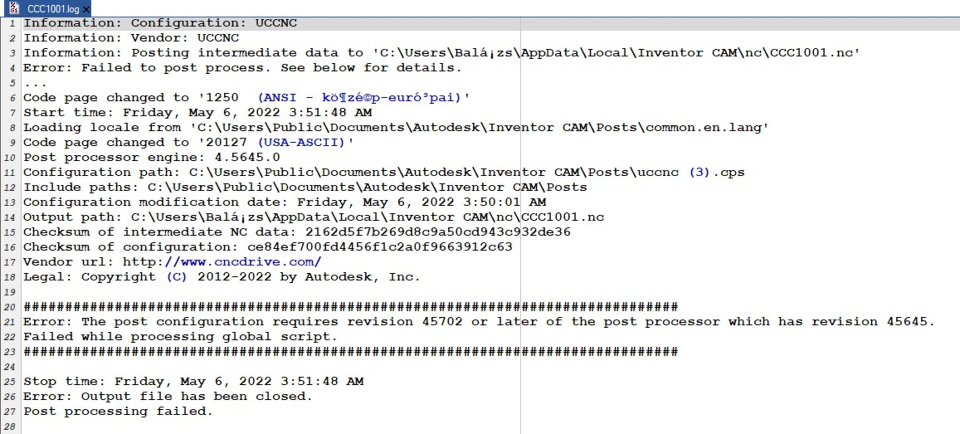 Használ valaki Inventor CAM (2021)-et? Program postolásnál a képen látható hibát írja ki.