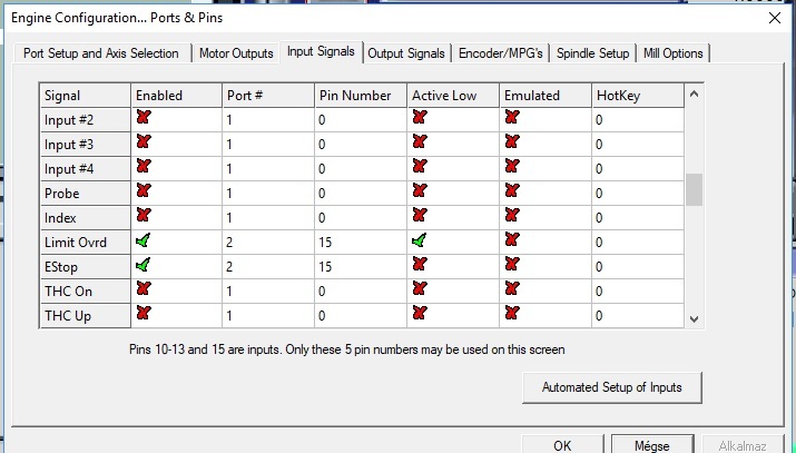 Mach3 ban az E-stop nál a kapcsoló NC  lábakra van bekötve tehát a megszakad 5V-t Ov esik vagyis aktív alacsony de hogyan lehetséges a képen látható modon dolgozik jól az "actív low "ki kellene h legyen pipálva, jol gondolom?