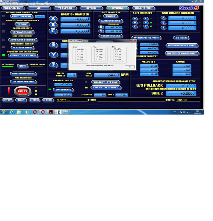 A y tengelyemet 2 motor hajtja, a comfig, slave axis-ba kijelölöm az y tengelyhez az A-t. Amikor rányomok az OK-ra, a settings, inhibits ablakba kialszik az x tengyely ledje, ha visszajelölöm, müködik a gép,de ha gondol egyet megint kialszik, jobban mondva átugrik az A tengelyre a kijelölés.