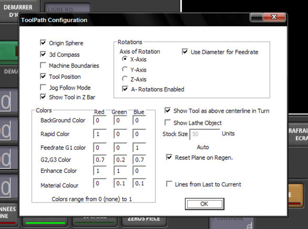 A szerszámút megfelelő kijelzése is csak úgy működik.