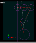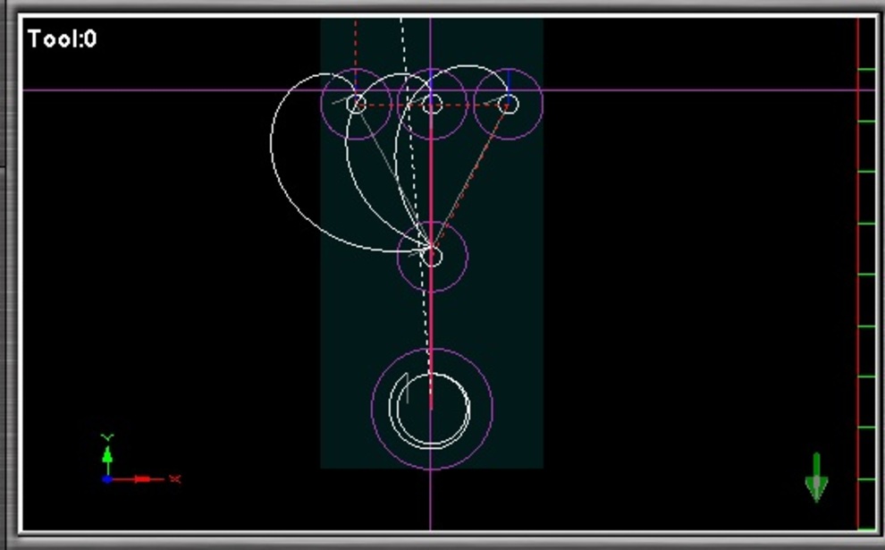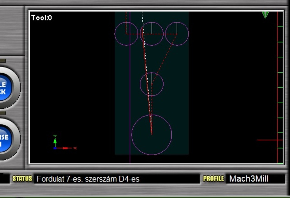 Második a program futtatása közben, amikor a három furat közül a bal szélsőt kellene csinálni. A koordinátákon is látni nem azt teszi amit kell.