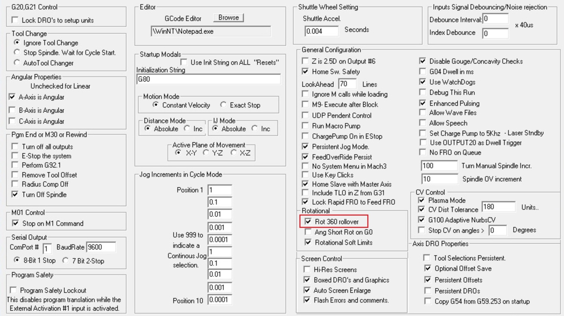 Az alábbi probléma lépett fel egy frissen telepített 4. tengellyel: ha kap egy parancsot, hogy forduljon + irányba mondjuk 150 fokot, gyönyörűen megcsinálja. Ha + irányba 200 fokot akarok lépni, minuszban indul el, és 20 fokot tesz meg. Mintha 180 fok lenne a bűvös határ. TB65360-as step/dir vezérlő hajtja a 4. tengelyt. A jelenség alapján MACH3 beállítási hibára gyanakszom, de kísérletezni nem tudok, mert nem nálam van az eszköz, hanem a hevesi ismerősömnél, én meg pösti lennék :)