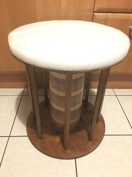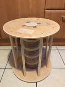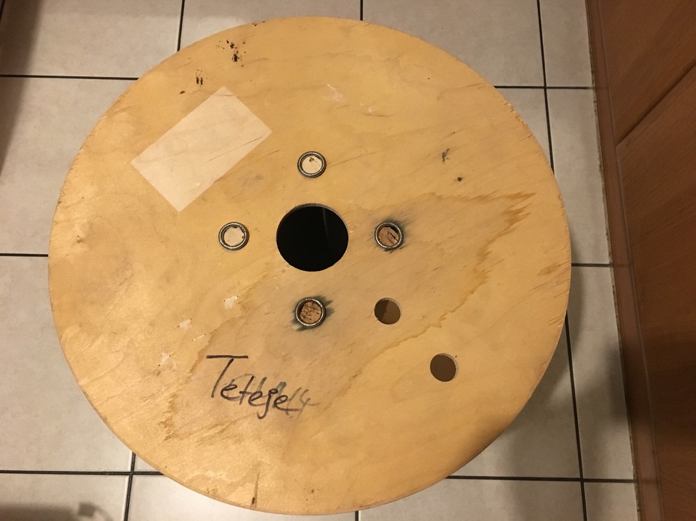 Elkészült a kábel dobból stoki projekt. Mielőtt felmerülne a jogos kérdés, hogy ezen mi készült CNC-vel, a kábel kivezető furatok dugóit vágtam lézerrel.