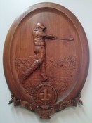 Éger a szalag és a kis kör, amin a helyezés van. Ezt kereszt irányban ültettem a cseresznyébe azért, hogy ne görbüljön a díj, és ne törjön le a szalag vége.