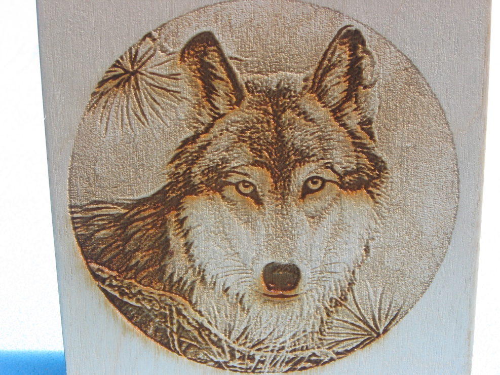 Egy régebbi CO2 lézeres farkasfej kép. Ez még, Tibor valamelyik gépén készült, nem a mostani enyémen.