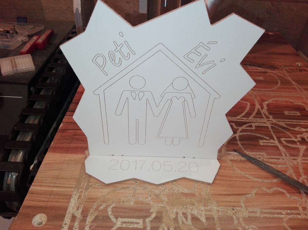 Rengeteg lézeres munka is volt rajta, a felirat gravírokon kívül furat és vágási helyzetek berajzolása is.
