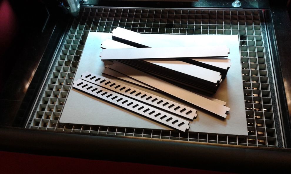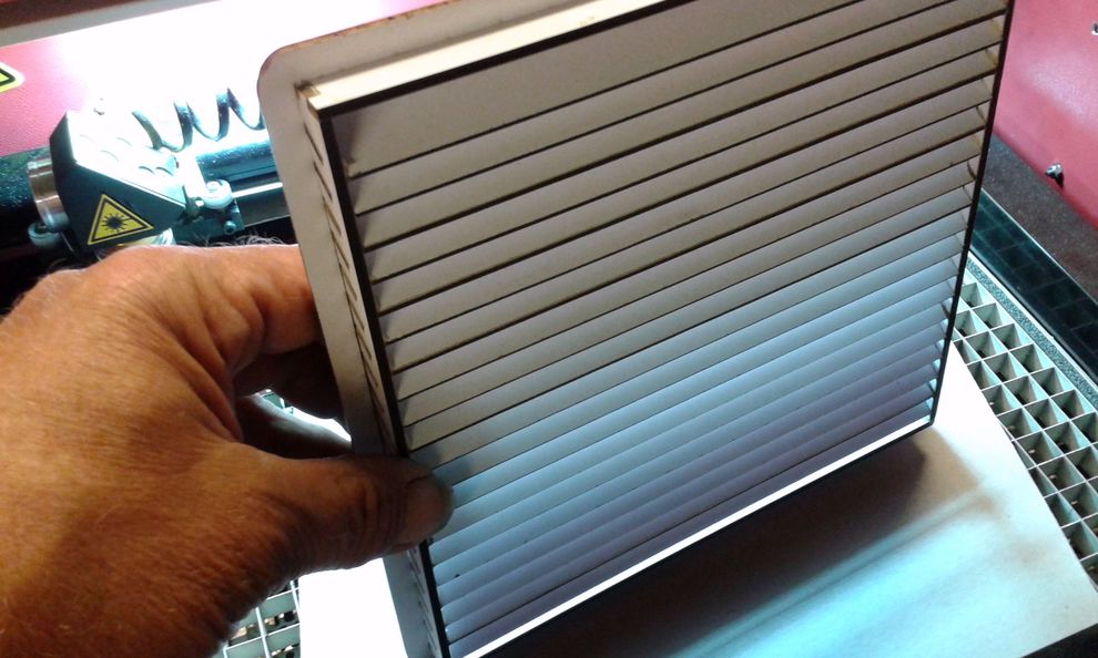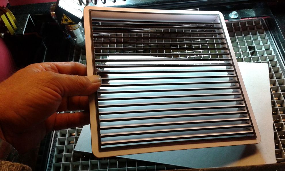 Az "önhordó" rács, 3mm vastag, mindkét oldalán laminált, fehér bútorlap(???)-ból készült.