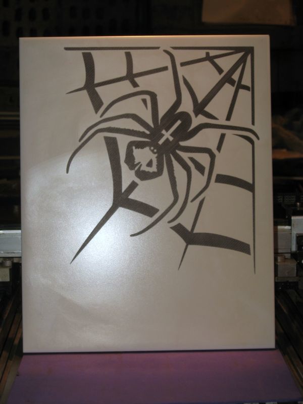 A "minta" segédanyag nélkül, CO-2 lézerrel, a csempe saját mázas felületére sütve.