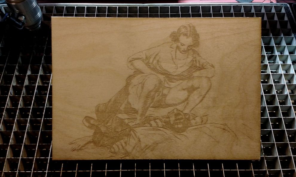 Kritikusabb szemmel nézve kilátszik, hogy a finom vonalak helyett már árnyalt foltok jelennek meg a képen. Lehet, hogy a nyírfa furnér szálszerkezete miatt?