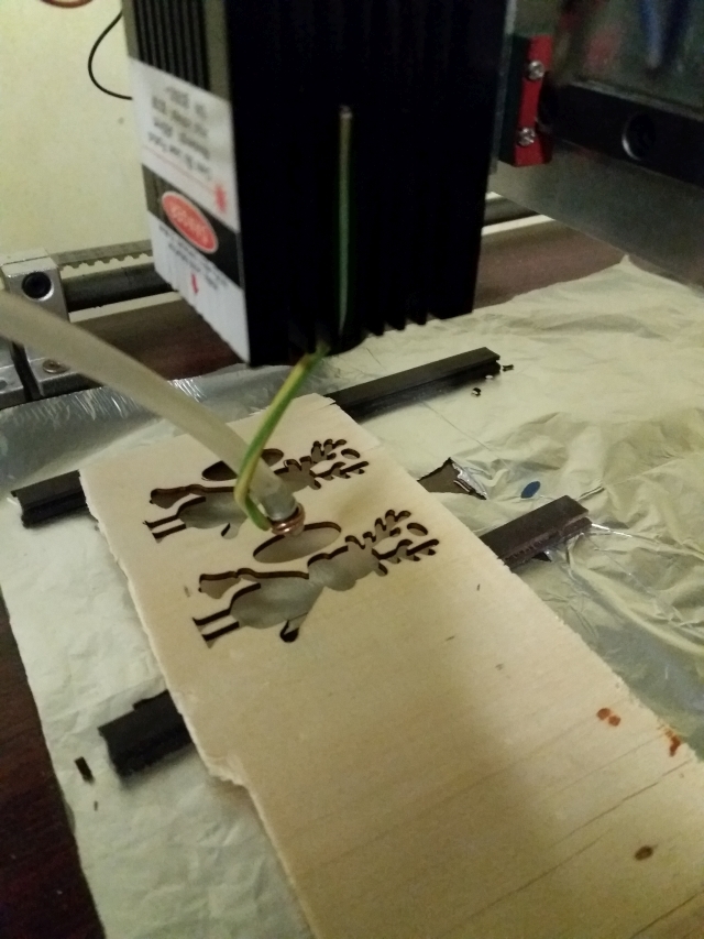 Feltöltöttem végre.. 3mm rétegelt lemez. A vágás eléggé elszenesedik, és a kormot rá is fújja a felületre. Levegő kb 3cmre van a vágási felülettől.