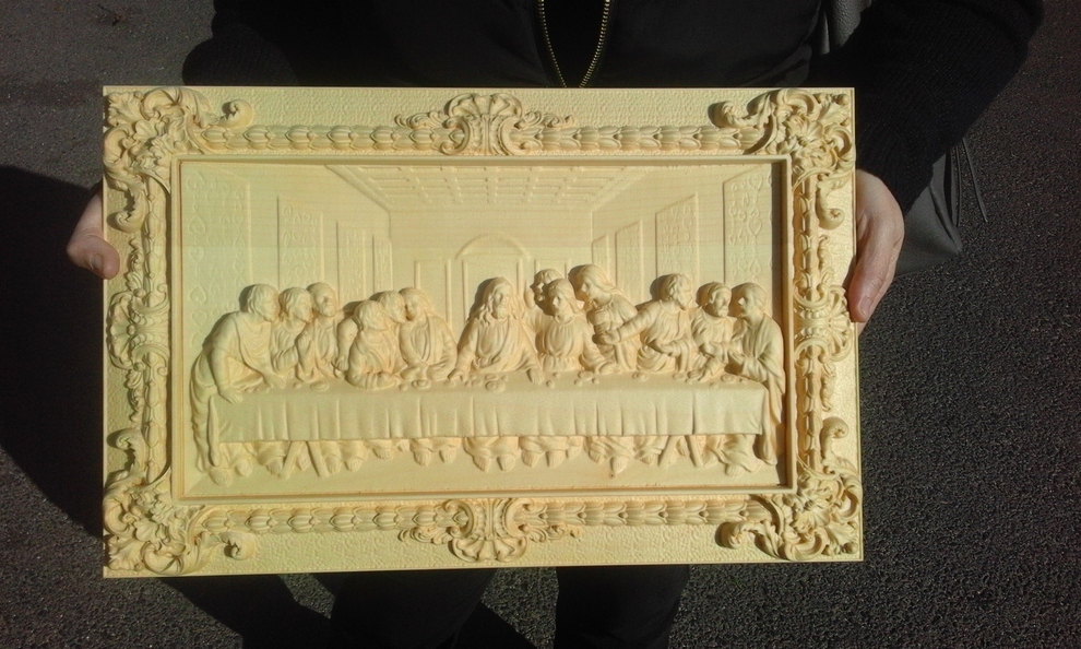 2500 as előtolással készült, féltem ha nagyobat adok neki akkor letöri a számnak a kiálló részét (volt már rá példa) persze ez lehet beállítás gond is . 6 órán kereszűl marta a fát. és az utómunkálatok is legalább annyit ha nem több időbe telteltek. tisztítás, és megfelelő árnyékok kiemelése, de azt gondolom megérte főleg hogy a saját házunkra készült :) mivel még elég kezdő vagyok így a reliefek egy részét neten vadásztam, de va amit már én készítettem artcam-ben. igyekszem minél többet taulni.