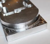 Ebben az esetben D=61mm kört martam 6mm-es keményfém maróval aluba 8mm mélyen emulziós hűtéssel.