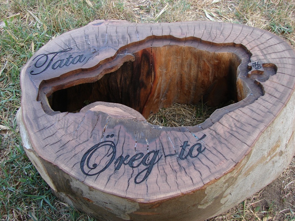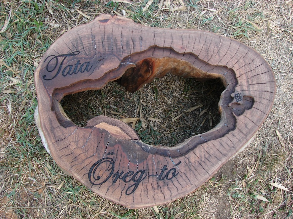 Sok sikert a munkához! Egyszer nekem is volt egy platános projektem. Az illető kiöntette 8mm vastag üvegből a tatai Öreg-tavat. Nekem bele kellett síkba süllyeszteni egy platán tuskóba. A tuskó belsejében lévő üreg nagyobb volt, mint az üveglap, ezért néhol pótolni is kellett a fába. A feliratokat nagyítóval égettem bele a tűző napon... Igen, tudom hogy nem vagyok normális. [#nyes]
