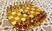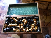 Ismerős volt és előkerestem a sakkfiguráid ikertestvéreit.Jól emlékeztél, valóban 50 év körüliek. A képen látható az eredeti táblája,ami egyben a tároló doboz is.Megkockáztatom,hogy 38Ft volt az ára,1969 pedig a születési éve. (a bélyegző alapján)