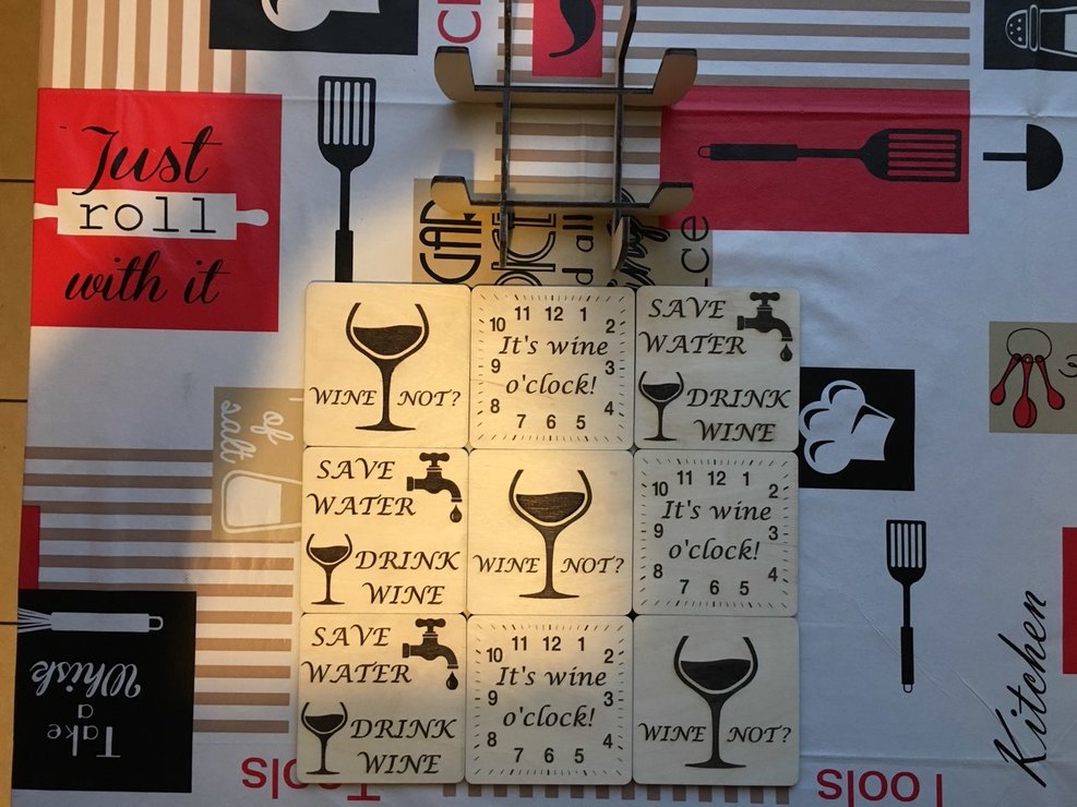 Fél-készen a poháralátétek és a tartójuk.