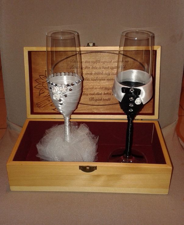 Megtudtam volna én is gravírozni a két poharat, de az ötlet,és a díszítés, a lányom keze munkája.