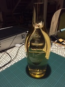 Az üvegre gravírozás és a dobozon lévő tábla az ő keze munkáját dicséri.