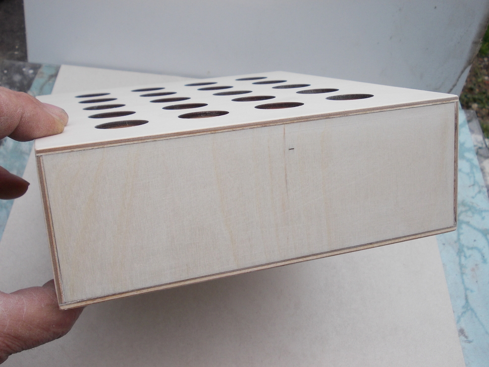 240x200x70 mm a doboz mérete, a fedlapon, 25 mm-es furatokkal.