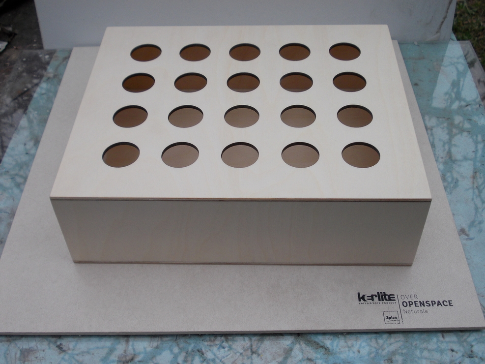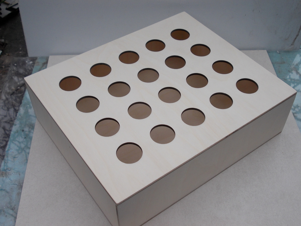 3 mm-es rétegeltlemezből, lézervágott, élben ragasztva.