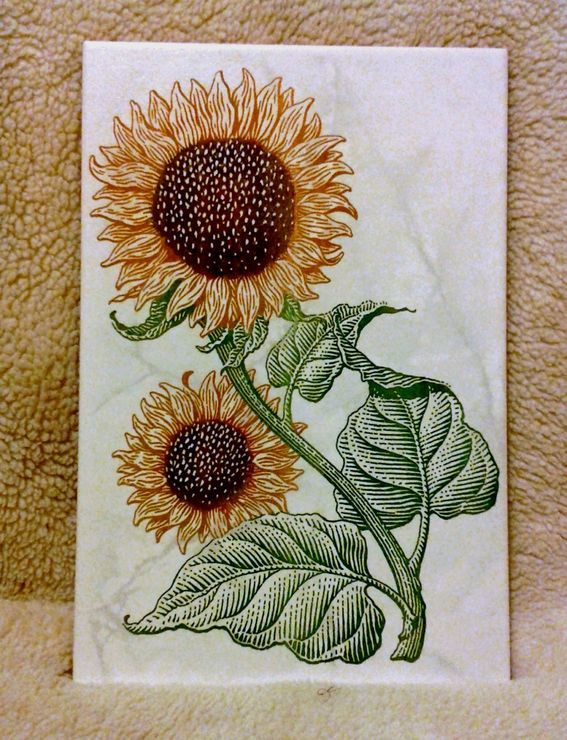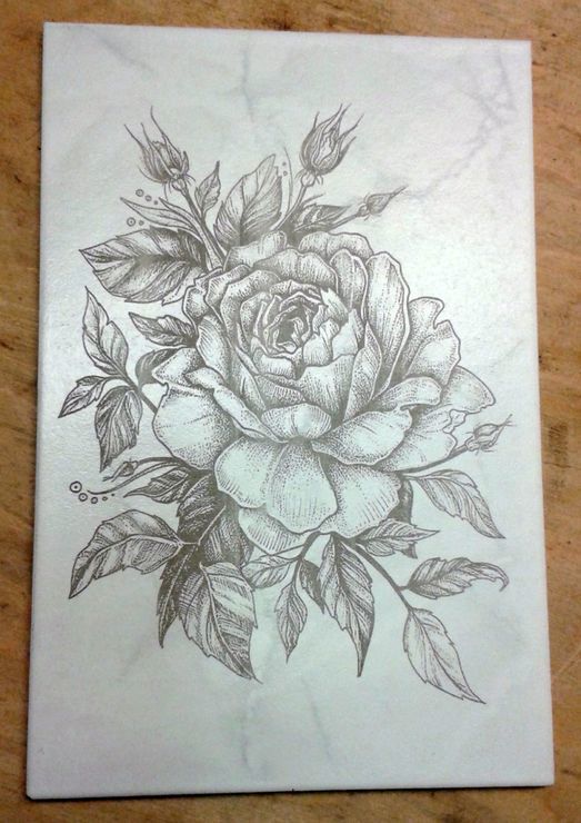 Mázas csempék, segédanyag nélkül gravírozva, majd a gravír után festve.