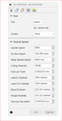 Kiválasztod mondjuk a 4000-es rpm-et, megadsz a maródhoz 1500 mm/min előtolást, és mutatja, hogy az 0,1 mm fogásmélység élenként. Ha nem tudsz lemenni a fordulattal 6000 alá (valami ilyen rémlik) és félsz a gyors előtolástól, akkor egy vagy kétélű marót használj, kisebb átmérőt, lényeg, hogy az él forgácsot válasszon le, mert különben sokba lesz a szerszámozás.