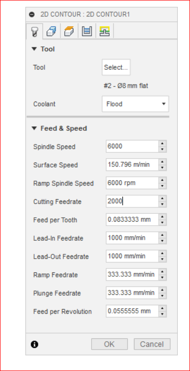 Így sajnos egy élre 0,005 mm fogásmélység esett fordulatonként, ami nem forgácsol, hanem csak dörzsöl, a maró élét szépen lekerekíti, vagyis megöli. A fusionban szépen látod a választott szerszám forgácsolási adatait, ahhoz korrigáld a paramétereket.