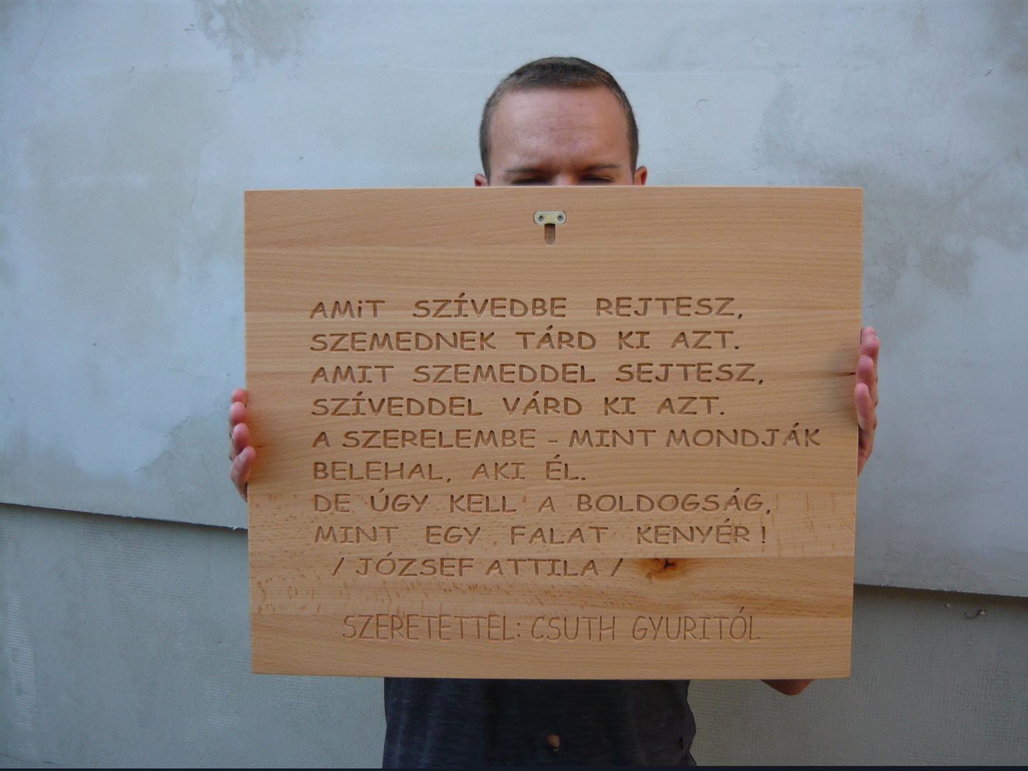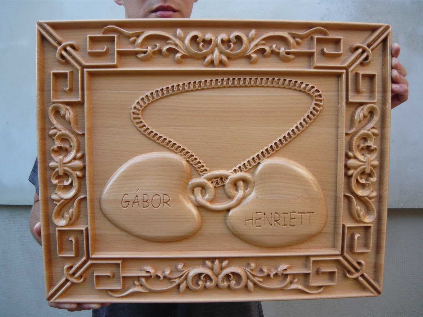 Ez a fiamnak csináltam, a barátjának adta esküvői ajándékként. Fehér bükk, kb 8 óra alatt készült el.