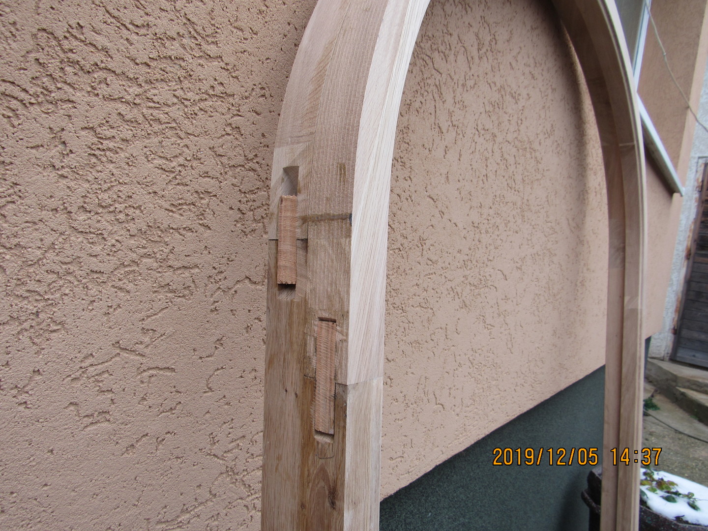 Az egyes ívdarabokon belül is ragasztott szélesítő toldások vannak, a szálirány nem követi az ív vonalát.