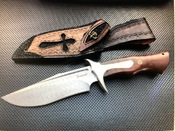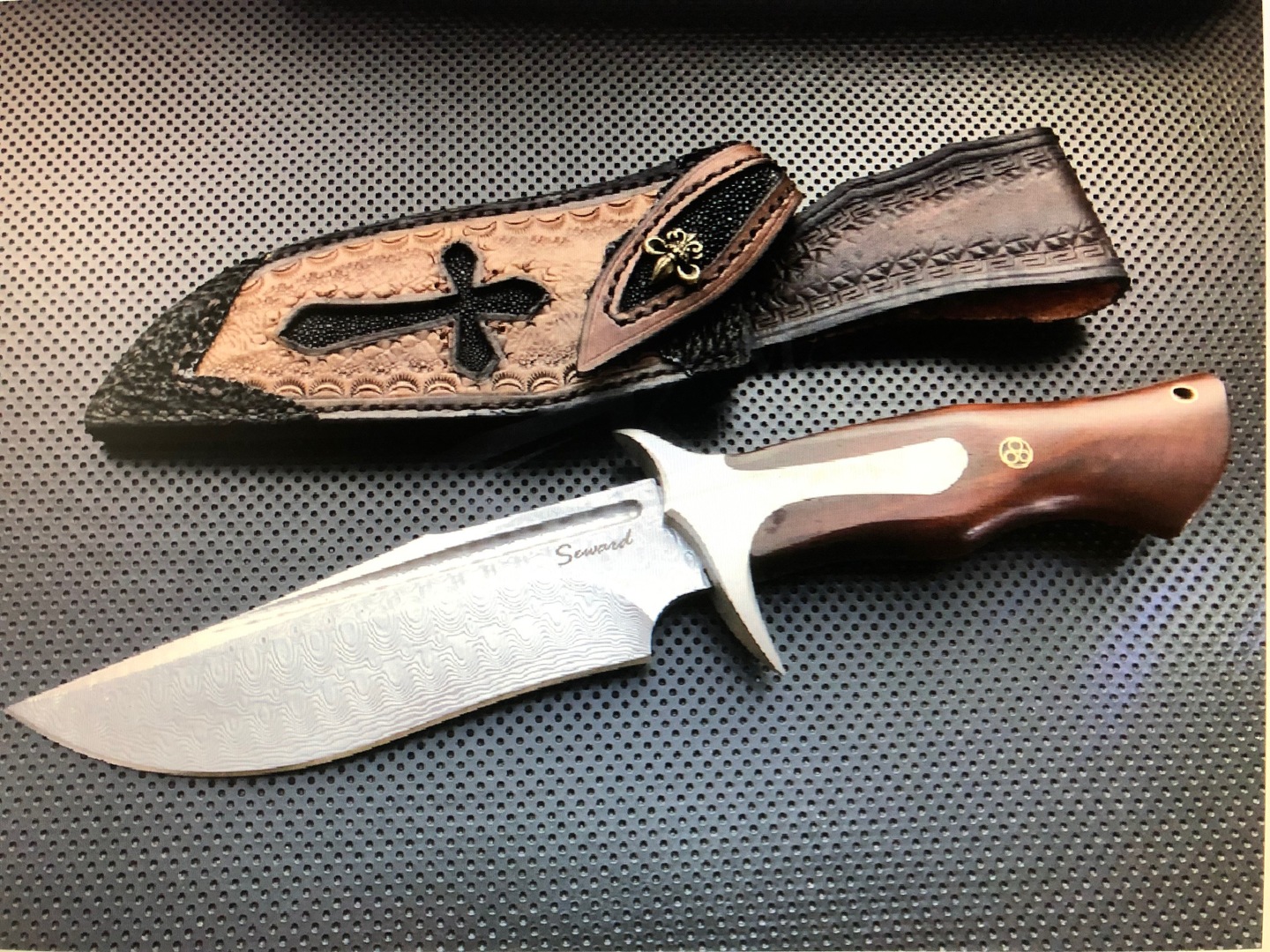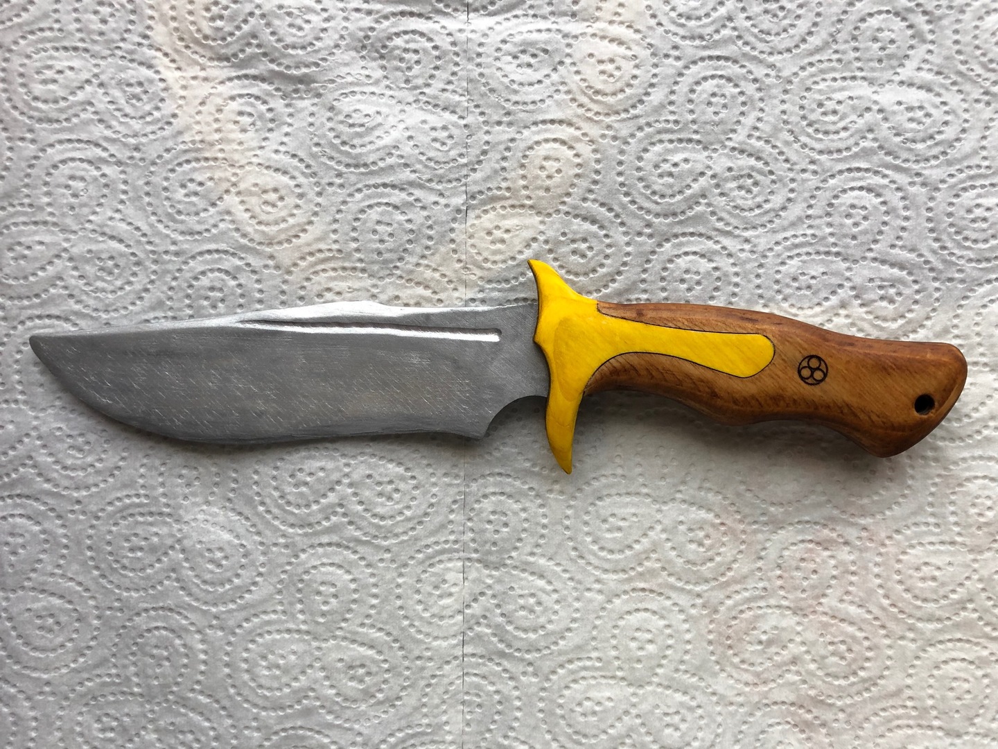 A középső rész, a penge 1 réteg és 2-2 réteg a markolat. Eztán faragva, festve, színezve, pácolva. Bár azóta még élethűbb, mert le is lett lakkozva. :)