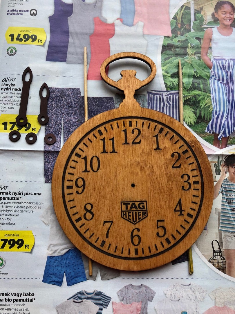 Kicsi nagy fiam első osztályos. Ki is adták az ukázt, hogy papírból, meg minden féle fisz-f@szból faragjunk órát. Na mondom, ez nem a mi stílusunk, így született a képen látható gyakorló óra. Keskenyebbik része, szóval az átmérő 138 mm.