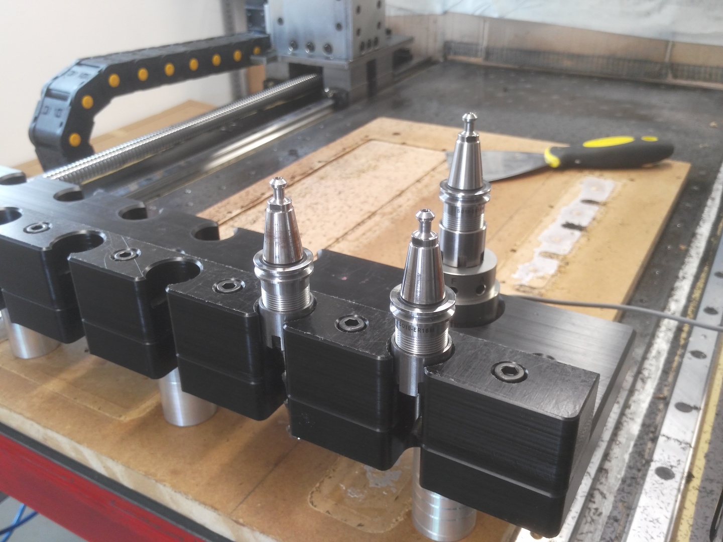 Most már csak valami burkolatot kellene rávarázsolnom, hogy a kúpokat megvédjem a kosztól és mehet az automatikus szerszámcsere.