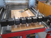 Provizórikusan föltettem a helyére a tárat és ezzel az emeletes megoldással tudom azt biztosítani, hogy a szerszámcserélőfej illetve a Z tengely egyéb szerkezeti elemei nem fognak ütközni semmivel.