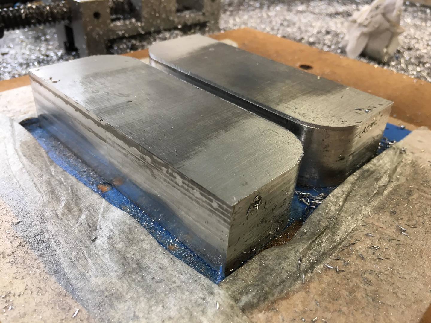 Miután sikerült beszereznem a szükséges cuccokat (3M Scotch blue 2090 és Loctite 4850) hozzá, ma délelőtt le is teszteltem egy 130mmx117mmx30mm-es alumínium darabon. Ebből a 2 darabból lesznek ugyanis a nagy satum lefogató talpai.