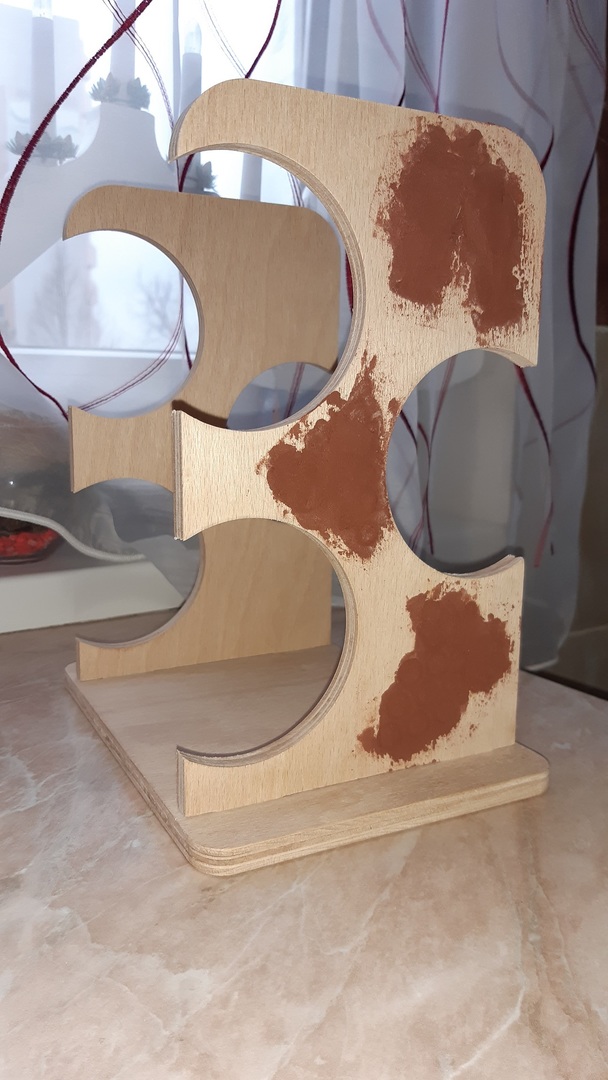 Más sokszor gondolkoztam azon , hogy feltöltöm az egyik munkám. Most egy borosüveg tartót készítettem.