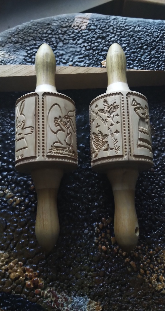 igazából a kíváncsiság vitt rá hogy elkészítsem, mert minden hol lézer gravírozott mintás sodrófával találkoztam, ami marással készült az egyszerű minta gömbölyű maróval marva, gondoltam azért nem készítenek marással mert az éles vékony részleteket biztosan kiszaggatja a maró, de ahogy látszik nem volt vele gond