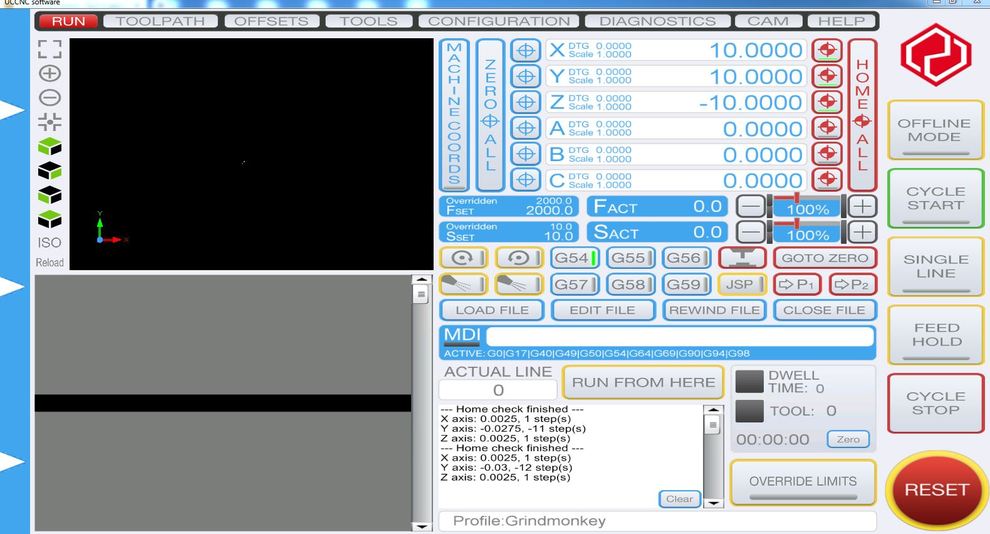 Első körben érdemes a home pozíciótól 10-10 mm-t elmozogni és néhányszor lefuttatni a makrót, hogy lásd, mennyire pontos a home érzékelőd. Nehogy elkezd egy olyan hibát keresni, ami nincs, ha esetleg nem pontos az érzékelő... :)