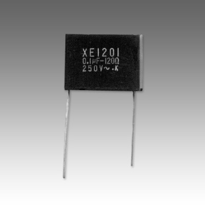 Egy 1/4 wattos 100 Ohmos ellenállatka sorban egy 0.1 µF kondenzátorral.