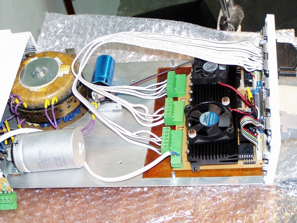 Már minden táp külön megy, egy rakat kondi a lábakon, a Bootstrap is elfelejtve.