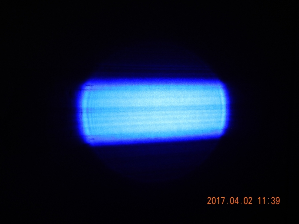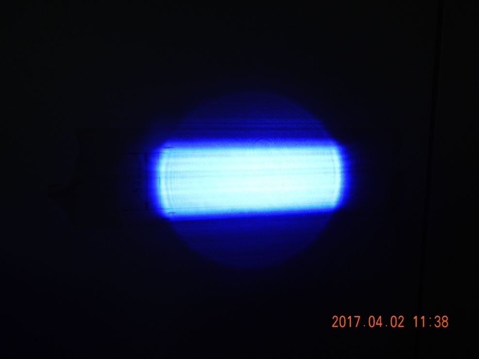 A csövet bekapcsolva, a kisülés meg sem indul a csőben, kb. 8-10% powernél az anódtól indulva, a cső külső üveg felületén áthúzás tapasztalható a hátsó tükör ragasztása felé.