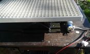 Készült egy könnyű, gérbevágott/hajtogatott/ragasztott alu keret 35x15-ös "L" idomból, ami az asztallap váza,és a rácsot is tartja. A keret méret 350x280mm.