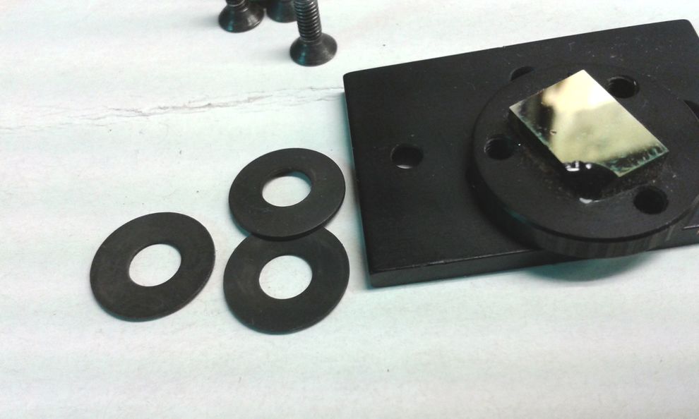 A három acél tányéros alátét szembeforgatva, maga a a rugó, amely előfeszíti a tükörtartó lapot.
