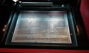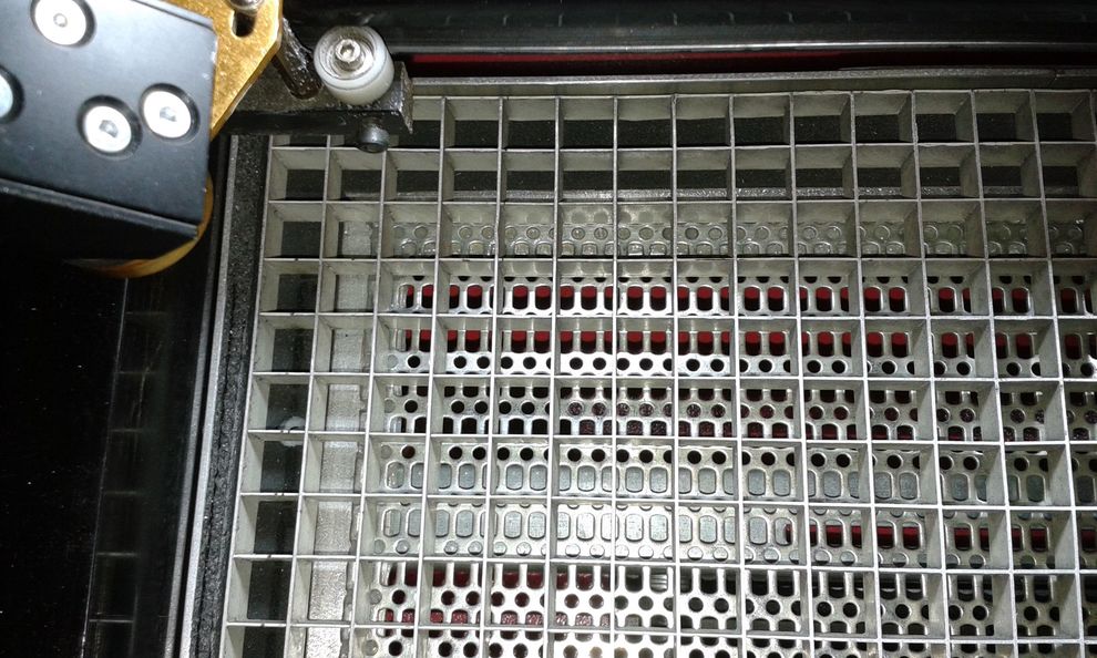 A rács alatti "perforátumnak", kettős feladatot szántam. Az hívatott megakadályozni a vágási "apró törmelék" lehullását,és azon keresztül megoldott a rács alatti tér elszívása is.