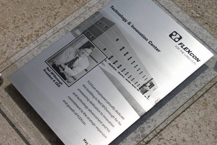 Annyit lehet tudni, hogy rozsdamentes acéllemezen maratott, de előtte valahogy fotóminőségben "ráteszik" a feliratot, ami saválló, utána megy a savfürdőbe? Van még profibb is, ahol bronztáblán a betűk állnak ki, (2-3mm-re) és ott is van fotó.
