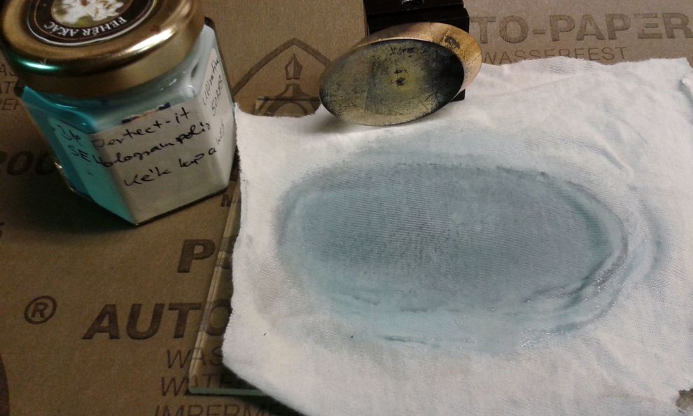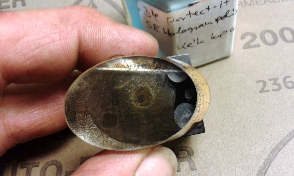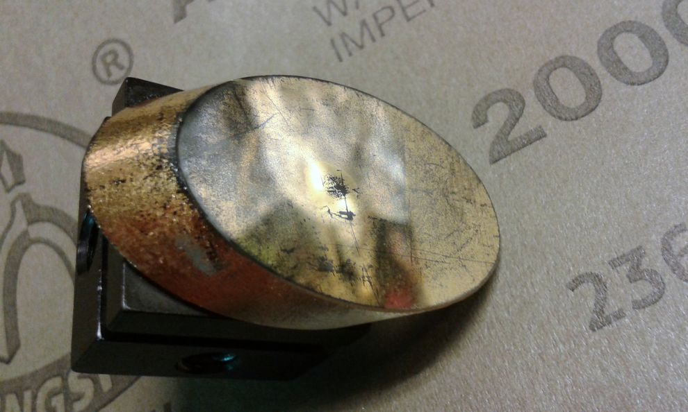 3.kép- Polírozási kísérlet, a "legfinomabb" szemcséjű, kék színű pasztával.
