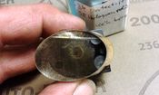 5.kép- Kíváncsiságból, kb. 8-10W-al "meglőttem" a tükör üvegfelületét, ahol már egyáltalán nincs rajta az aranyréteg. A két lövés nyoma,(a két kráter)jól látható a kép jobb oldalán.