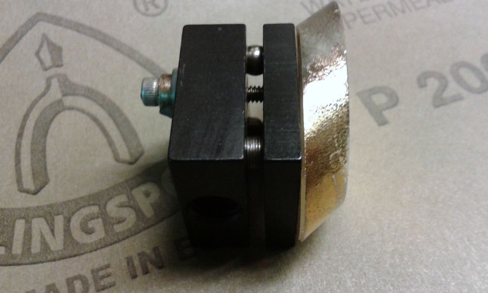 1.kép- Maga a tükörtartó, a ragasztott fémgőzölt üvegtükörrel. A tartó, finom kis szerkezet, pontosan, precízen állítható.