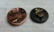 Jól látom, hogy azok a fekete lyukas tárcsák azok valamiféle tányér rugó szerepkört tölnek be a konstrukciódban? Ha igen, akkor mekkora a rugóállandójuk, és mekkora úton szorítod össze őket? Valamilyen terhelőerő adatra ugyanis szükségem lesz a vörösréz lap deformációjának a kiszámításához, és a tükörlap ármérője, menetes (M4?) zsákfuratok osztókör átmérője is kellene bemenő adatként.